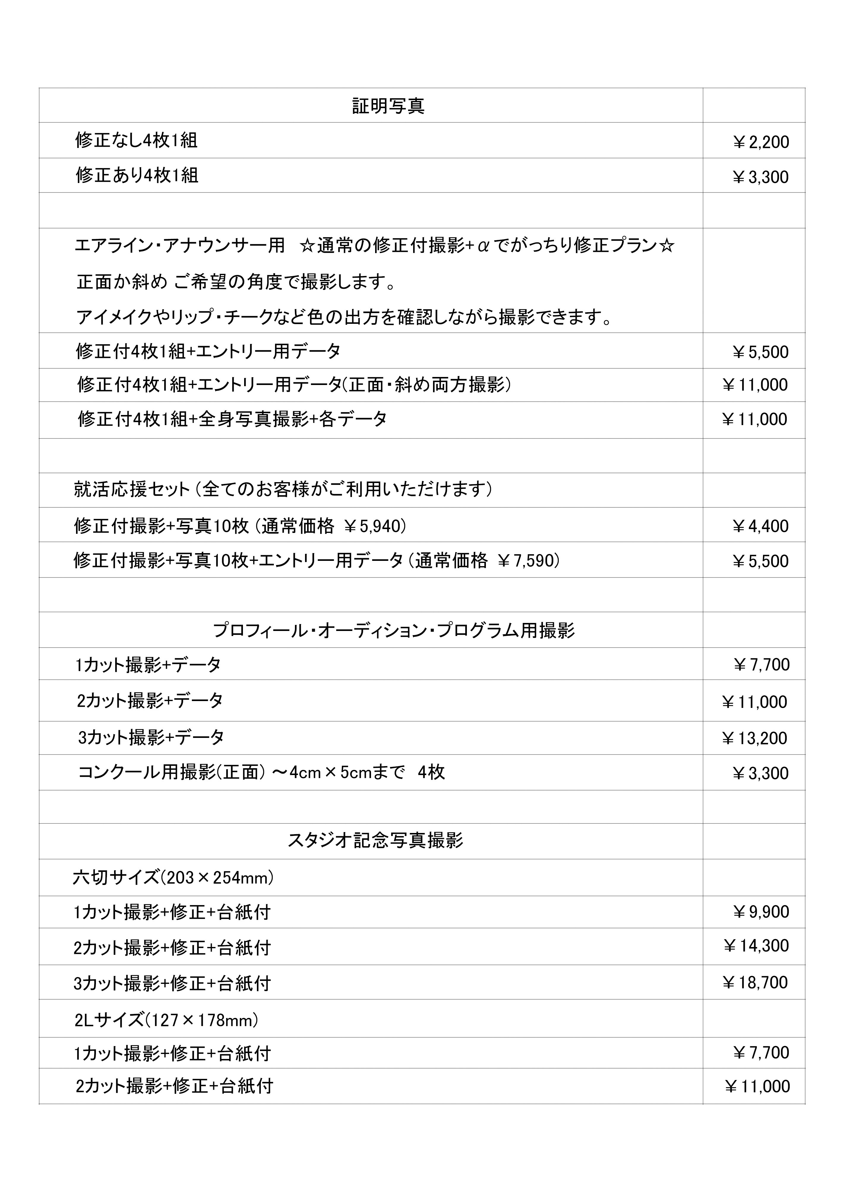 - 2026/04/21 : 料金改定のご案内 札幌狸小路6丁目 スタジオダッシュ